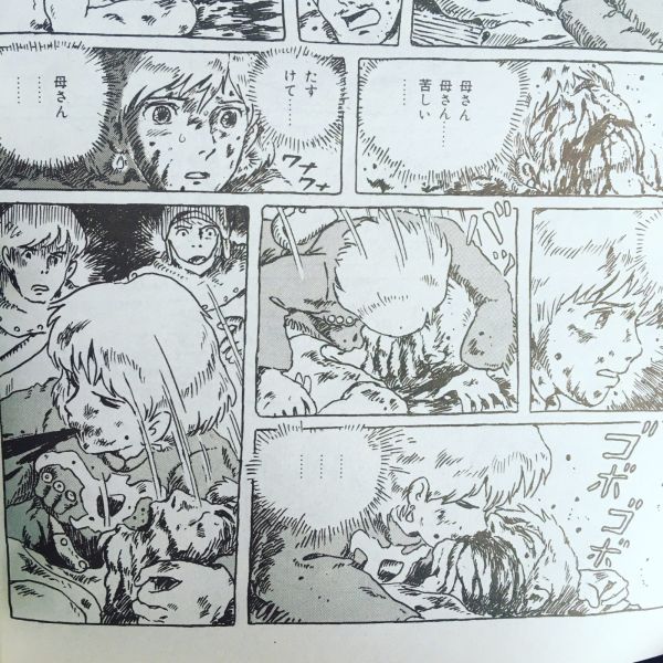 「苦しい…たすけて…母さん…たすけ…」声が漏れてくる口を、ナウシカは塞いだ、自分の口で、血の溢れる兵の口を、唇で、溢れてくる血を吸って、離して、外に吐く、吸って離して外に吐く、吸って、離して…