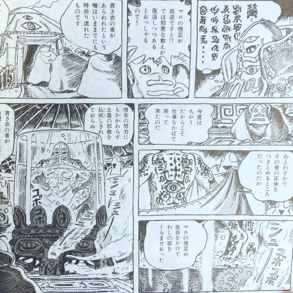 「あとわずかでその者の正体をつきとめるところだったのだが、マニの僧正め、生命をかけてわしの眼をくらませおった」そう言いながらミラルパは、薬液の中にあぐらをかいて全身を浸からせた…
